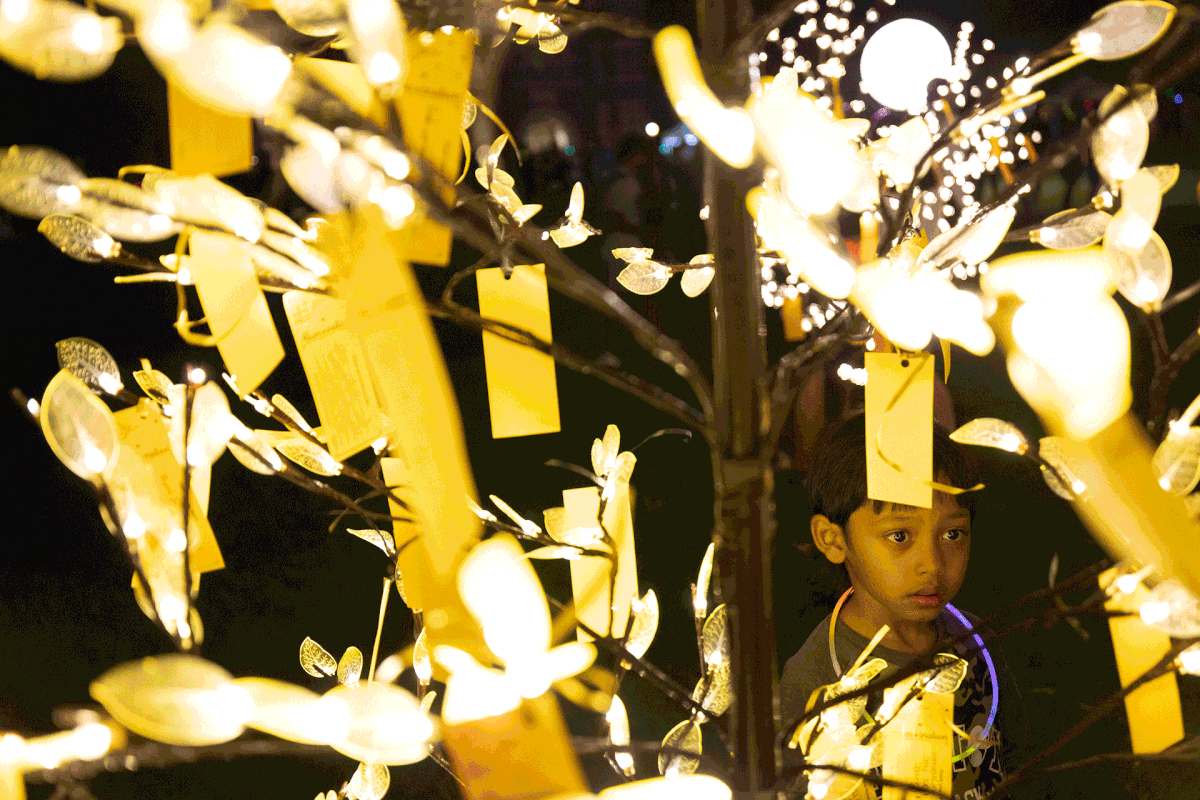 Campus Activities Programming Board event enjoying the festivities of the brisk night with lights.