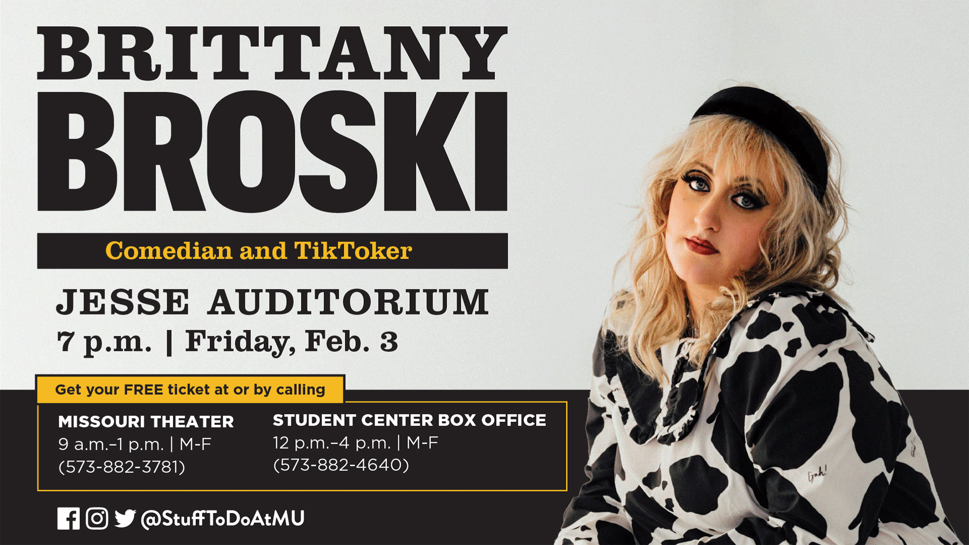 Campus Activities Programming Board event spending an evening the the TikToker/Comedian/Youtuber, Brittany Broski.